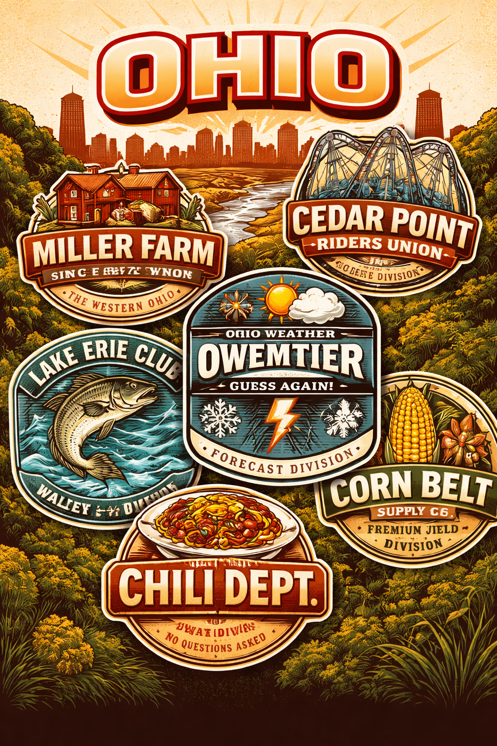 Celebrate the Buckeye State with a bold Ohio t-shirt collection featuring vintage badge designs, Midwest humor, and lifestyle-inspired graphics. From cornfields and Lake Erie to chili culture and unpredictable weather, each design captures the spirit of Ohio with a retro, wearable edge.