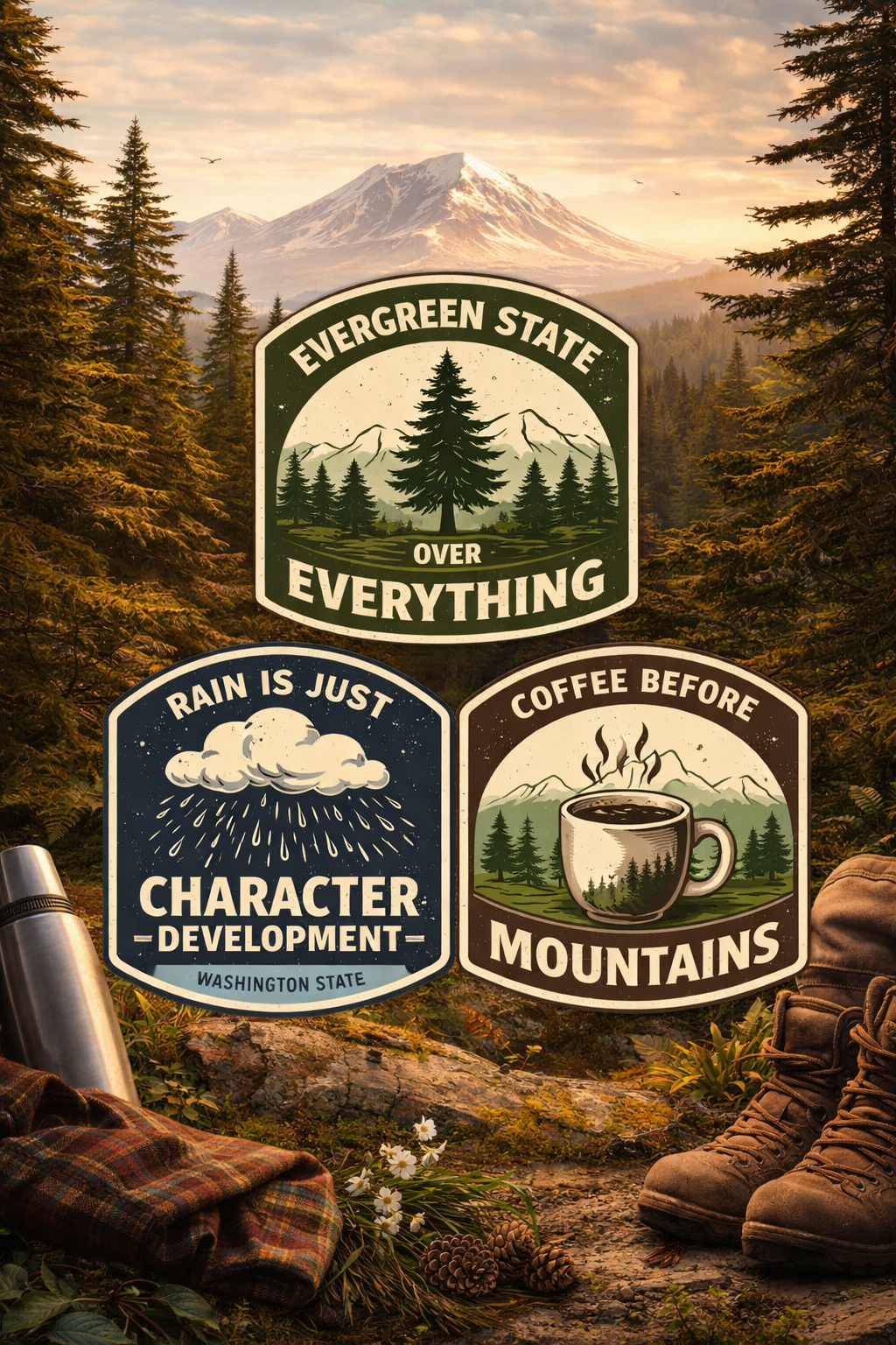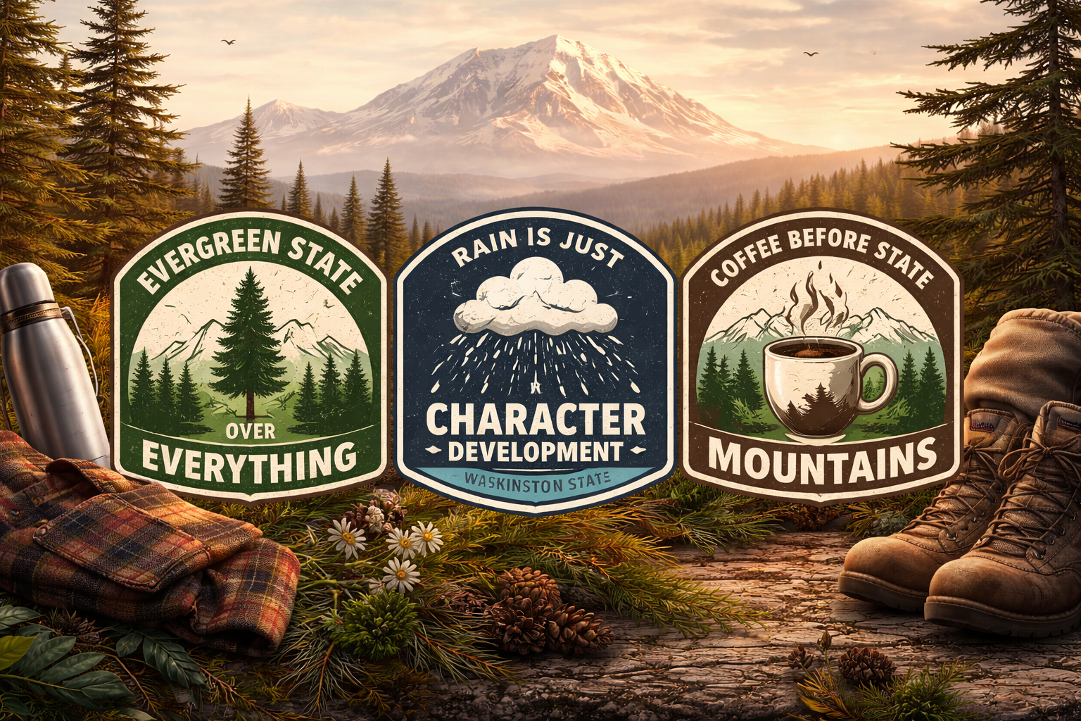 Discover the spirit of the Pacific Northwest with this Washington State t-shirt collection, featuring vintage-inspired badge designs rooted in evergreen forests, mountain ranges, and everyday PNW culture. From Mount Rainier silhouettes to rain-soaked humor and coffee-fueled lifestyles, each design captures the essence of Washington living with bold, wearable style.